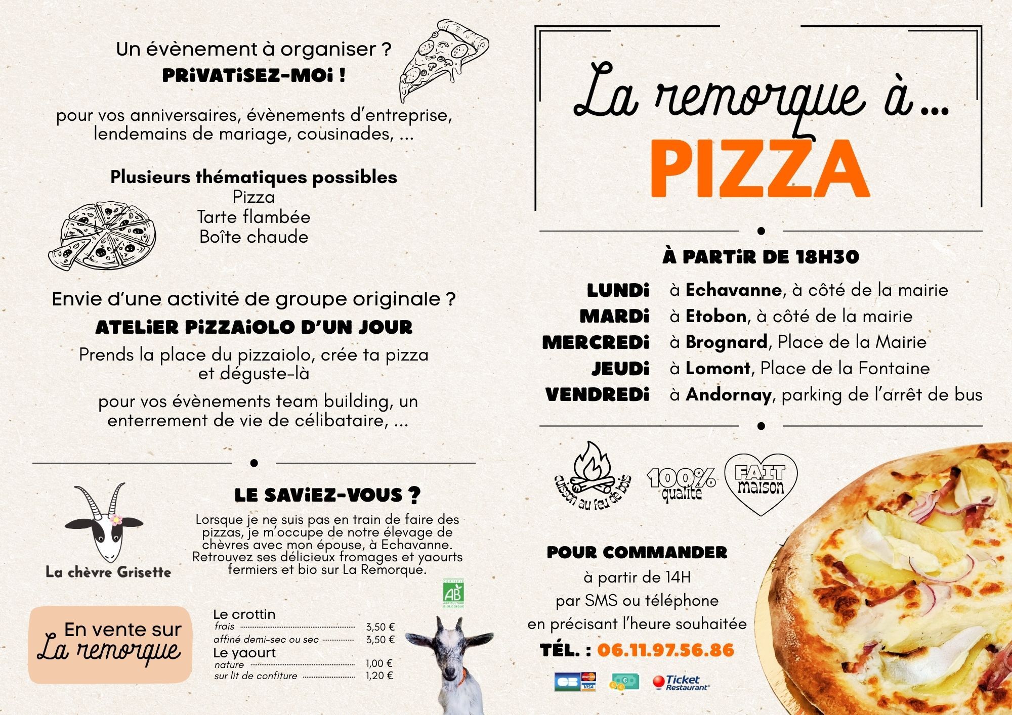 Je propose également la privatisation de la remorque. Je peux ainsi assurer vos événements privés ou d'entreprise. Plusieurs formules pour ces événements : pizzas, tartes flambées, boîtes chaudes... N'hésitez pas à me contacter pour plus d'information.